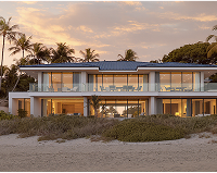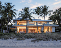 White or soft pastel-colored exteriors, with natural wooden or stone finishes. Large windows and wide verandas for maximizing ocean or water views.