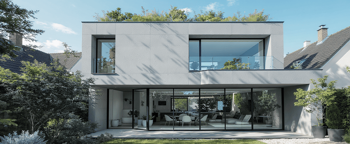 The exterior design is bold and minimalist, often featuring large windows, flat roofs, and metal or concrete facades. The clean lines and strong design elements make the Urban home stand out while complementing the surrounding city environment.